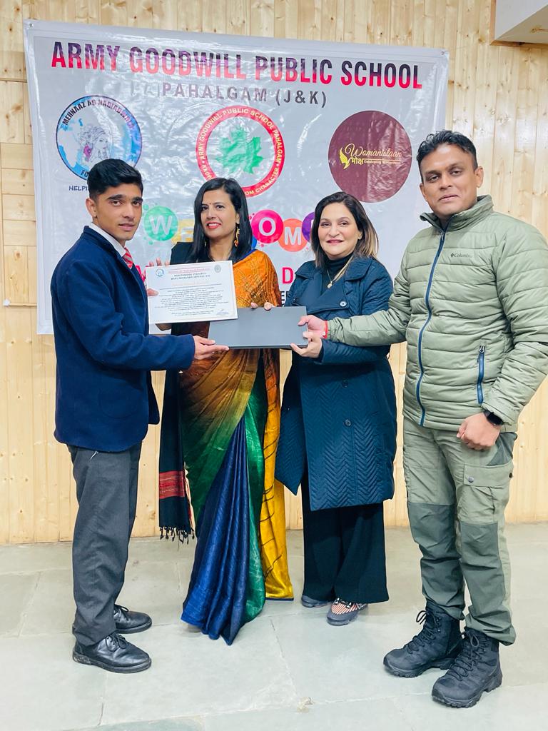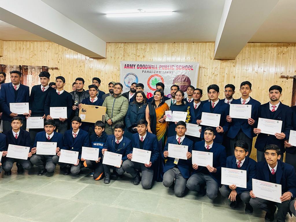 Children’s Day celebration was attended at Pahalgam - Kashmir by Dr Mehnaaz Nadiadwala. Lap top to the best student of the year was give. And a tab to the most promising girl child. 40 Certificates were awarded for academic excellence and trophies were given to army faculty and Commanidng officer Ajeet Agarwal and Major Alok along with principal Ila Upadhyay.